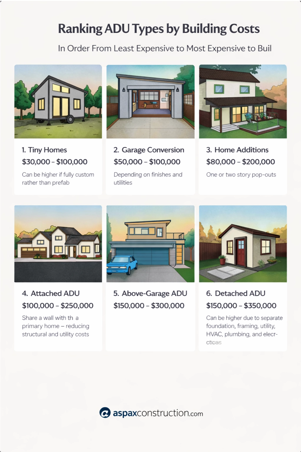 | Above Garage ADU | $150,000 – $300,000 |